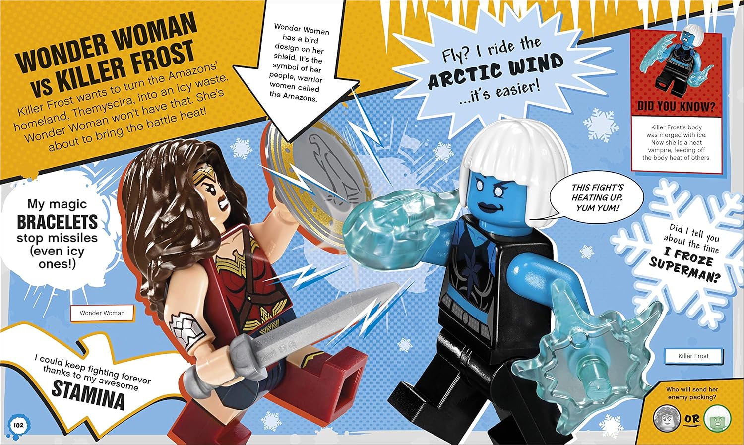 Read about amazing Super Heroes and wicked super-villains. Discover their awesome powers and accessories. Decide who comes out on top in each battle, including Batman vs Poison Ivy, The Flash vs Captain Cold, and Firestorm vs Firefly.